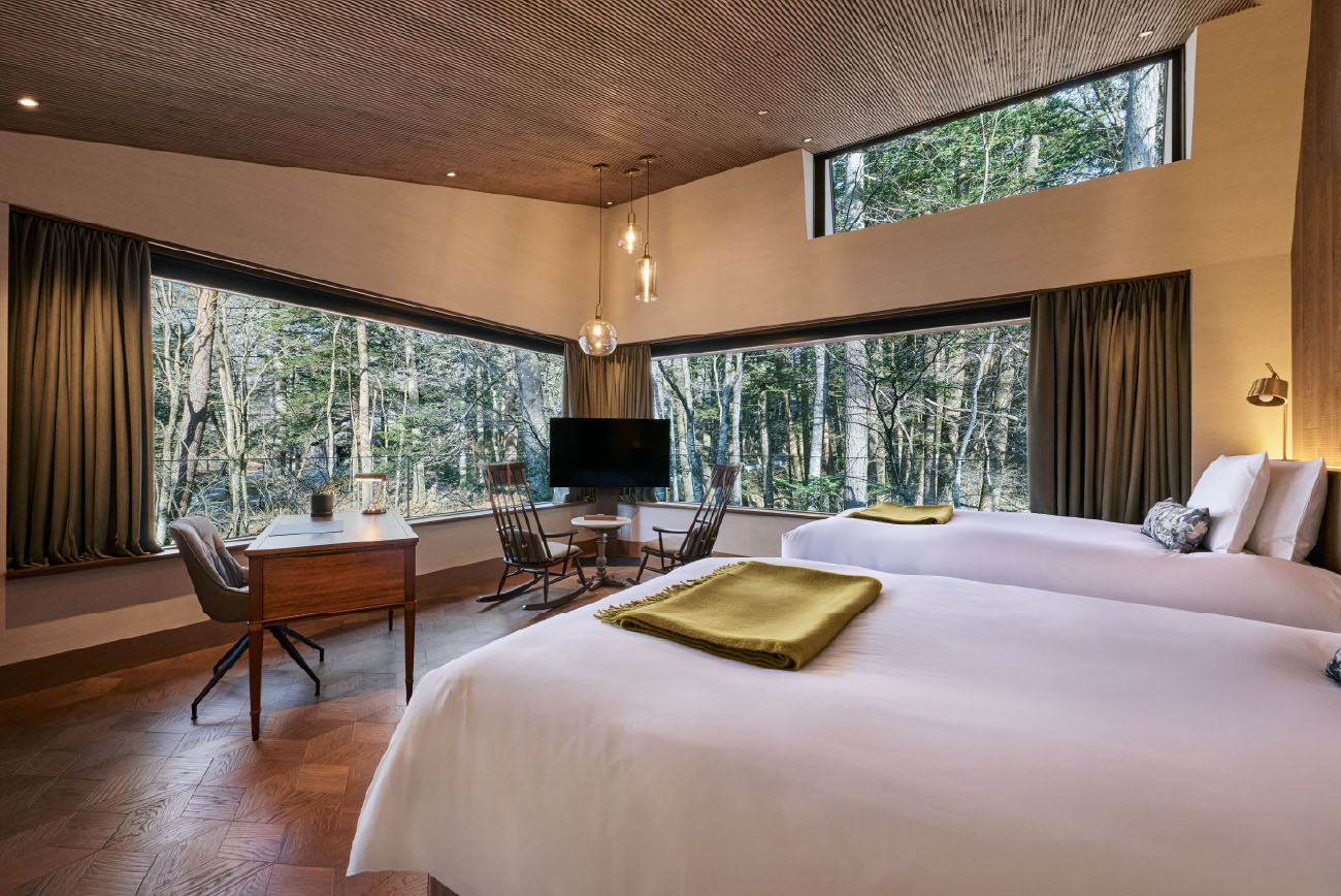 年間14泊の所有権で別荘を利用し、四季折々の自然を楽しめ、他のタイムシェア別荘との相互利用も可能です。